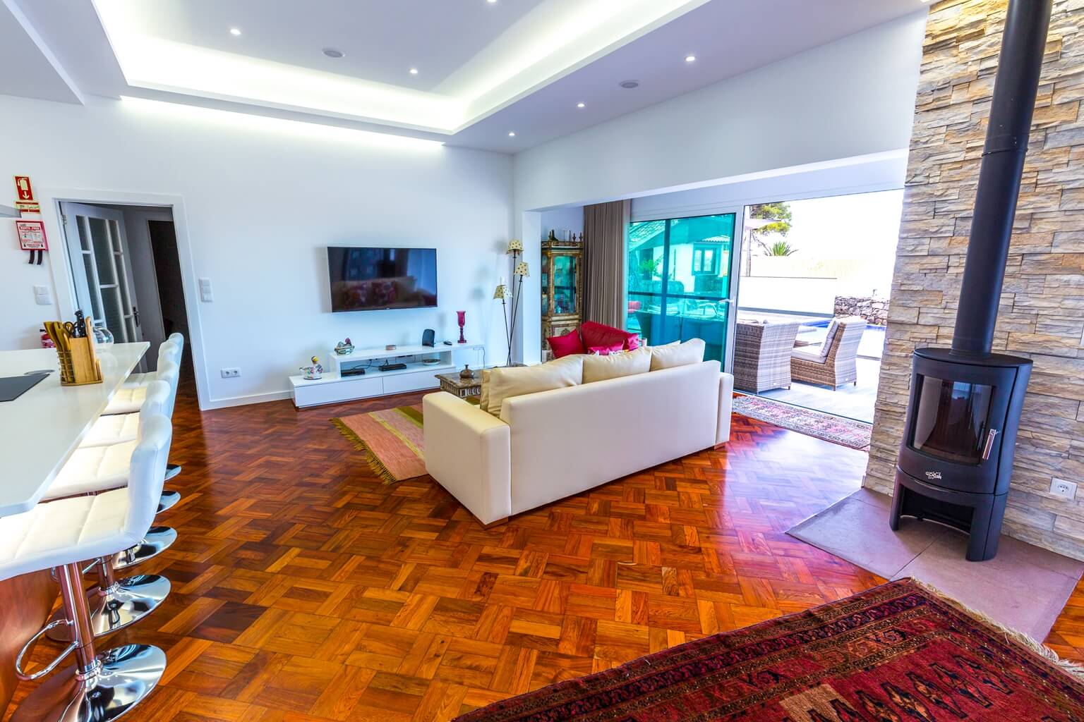 This house is equipped with a sound system, which allows you to listen to music/radio indoors, but also while in the pool.