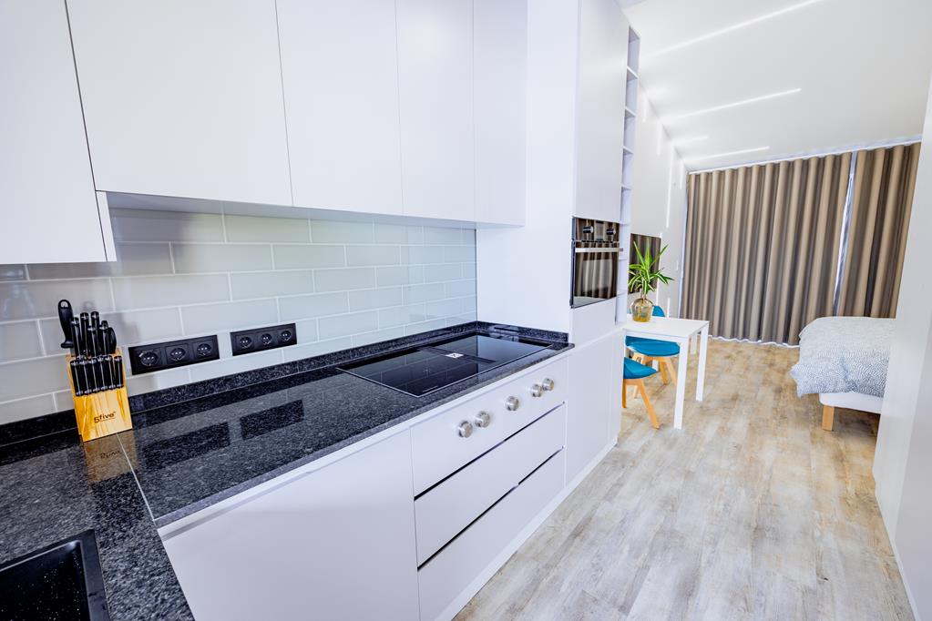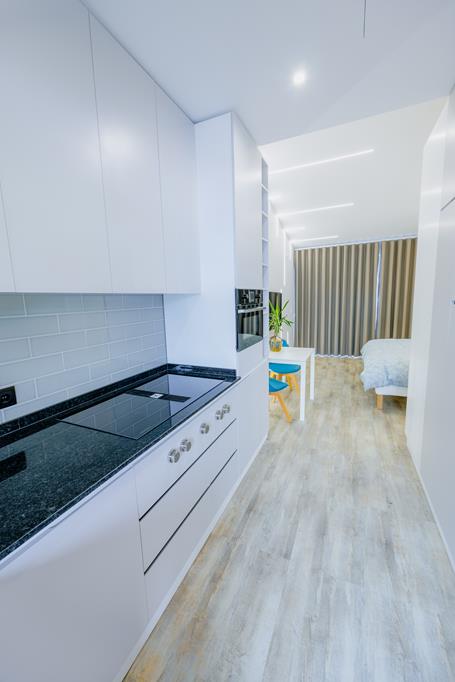 Modern, well-furnished studio in a prime location, situated on the 3rd floor of a pleasant apartment block. The kitchen is fully equipped, with a washing machine and has free Wi-Fi and satellite TV. It has two single beds together, a small dining area and a balcony with a leisure area, where you can enjoy your meals or relax with a view of the sea. The studio is ideal for solo travelers or couples, for vacations or business trips.